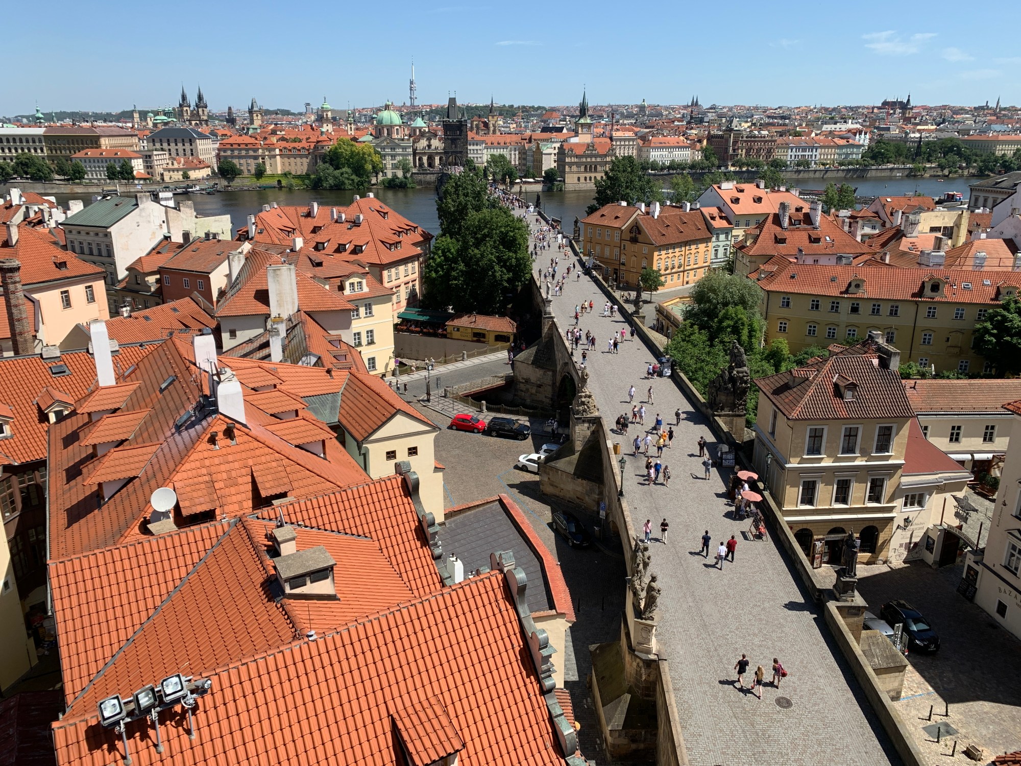 The tower is one of many (many, many) viewpoints in Prague, each offering its own unique view of the city. You know what I hate? Stairs with no risers, forcing you to see how high you are as you climb. You know what’s worse? Stairs built hundreds of years ago that creak and groan and shake with every step. Still, I made it to the top and back down alive, and it was worth it. The views are spectacular and the exhibits on the way up are interesting.